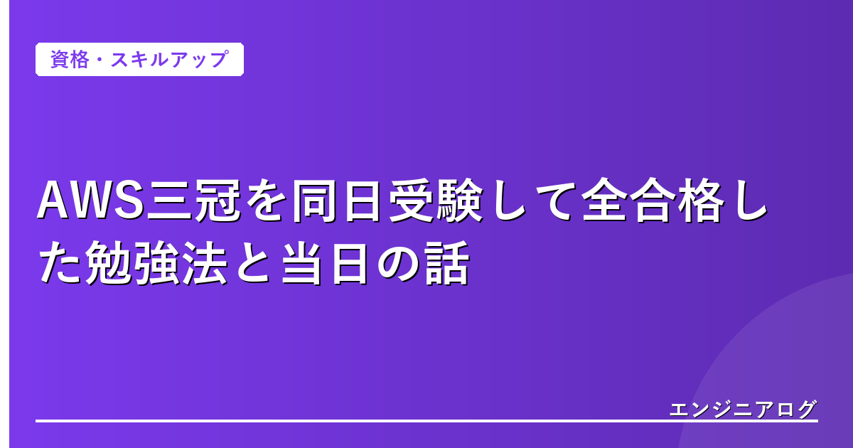 この記事では、なぜ同日3本受験にしたのか、どうやって勉強したのか、当日どんな体験だったのかを正直に書いていく。これからAWS三冠を目指している人の参考になれば嬉しい。