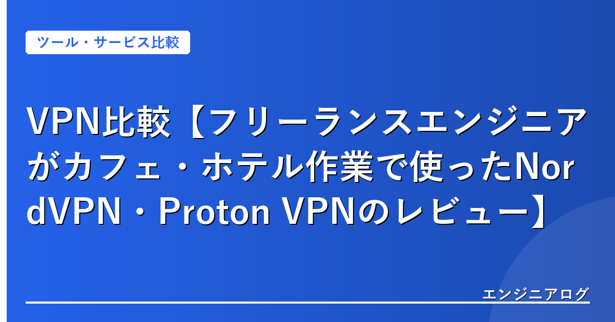 この記事では、実際に使ってみたNordVPN・ExpressVPN・Proton VPNを比較しながら、フリーランスエンジニアがVPNを選ぶ際の判断基準をまとめる。無料VPNの危うさや、VPN費用の経費計上まで含めて解説する。